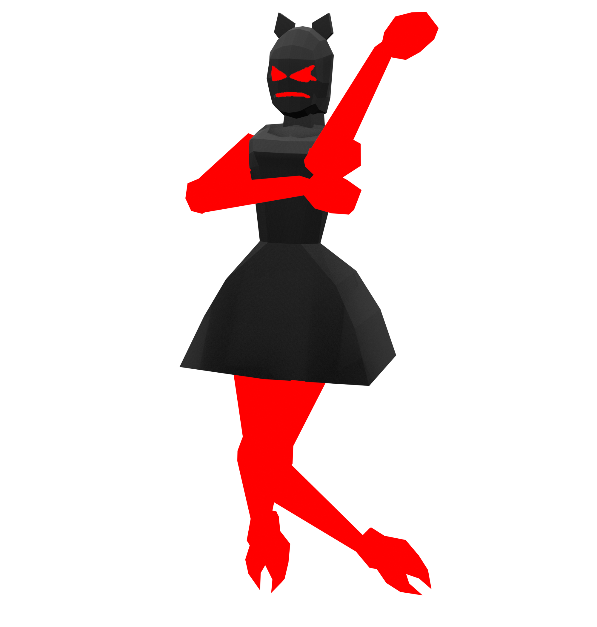 First couple of images is ERROR. She is a spirit of negative emotions and is made up of evil red energy™ cloaked in black. She is very evil you should take her threats seriously! She clocks in 1.6m tall and is currently the shortest character in the game.